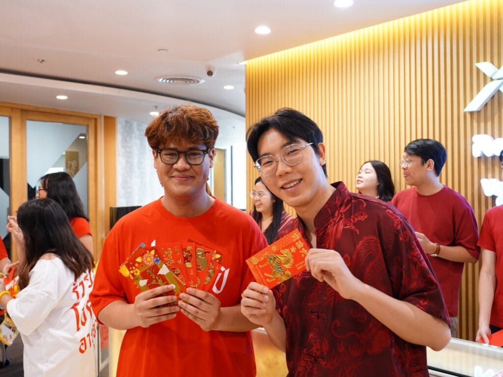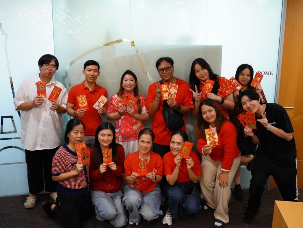 งานฉลองตรุษจีน ที่พนักงานของเราได้ร่วมสืบสานประเพณี แลกคำอวยพรดี ๆ สนุกไปด้วยกัน และรับอั่งเปา กิจกรรมนี้ช่วยเสริมความสัมพันธ์ในที่ทำงาน และเติมพลังบวกให้พร้อมสำหรับปีใหม่